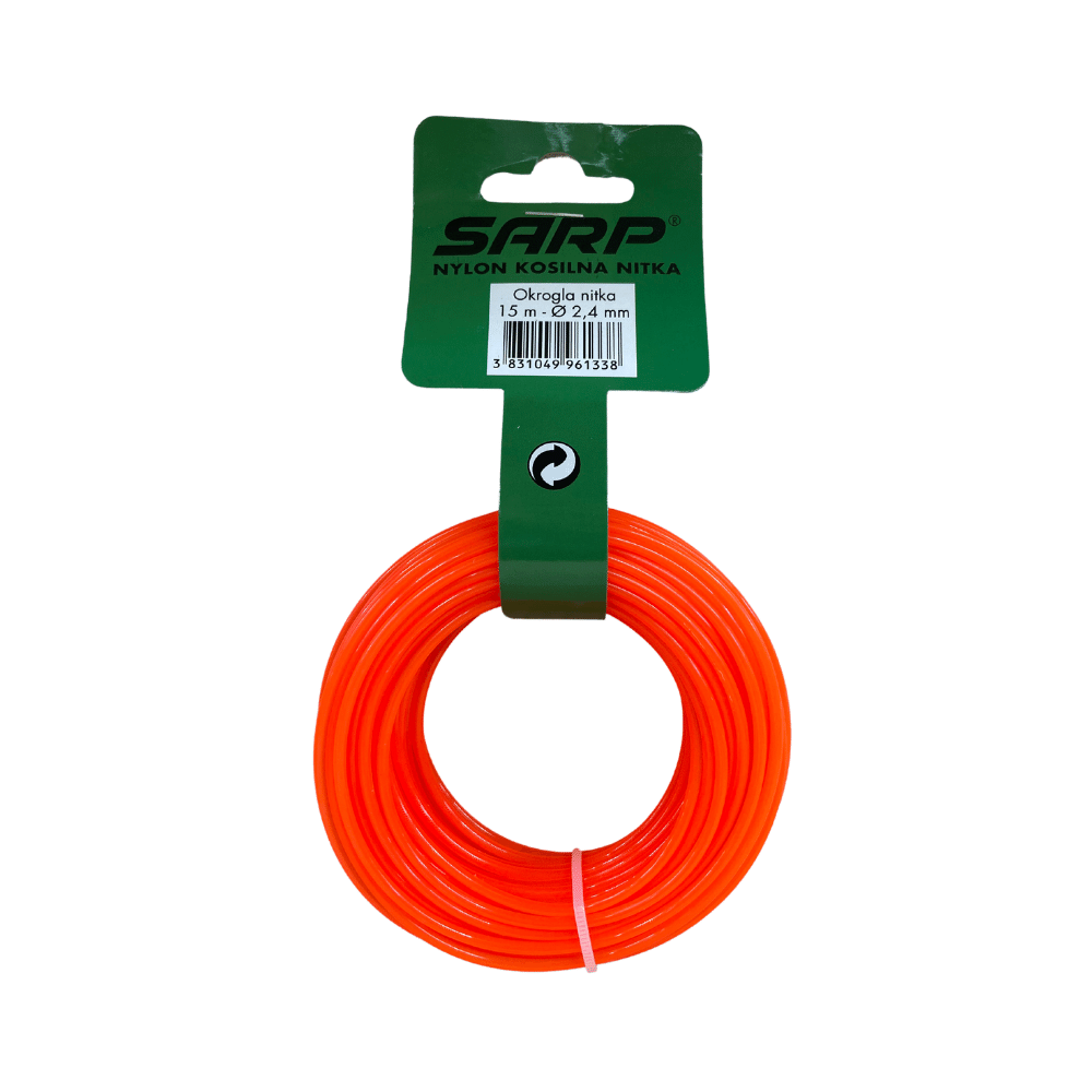 Kakovostna okrogla kosilna nitka Sarp za košnjo trave s koso na laks.