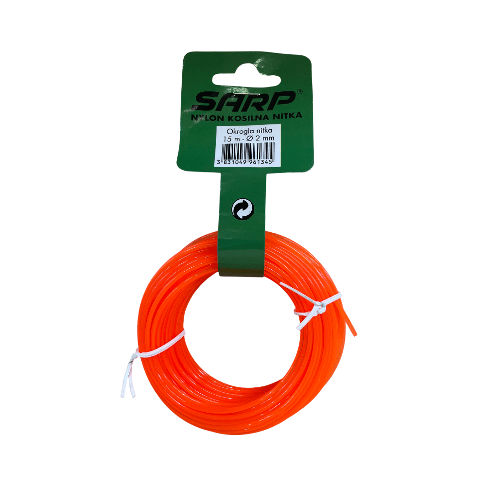 Kakovostna okrogla kosilna nitka Sarp za košnjo trave s koso na laks.
