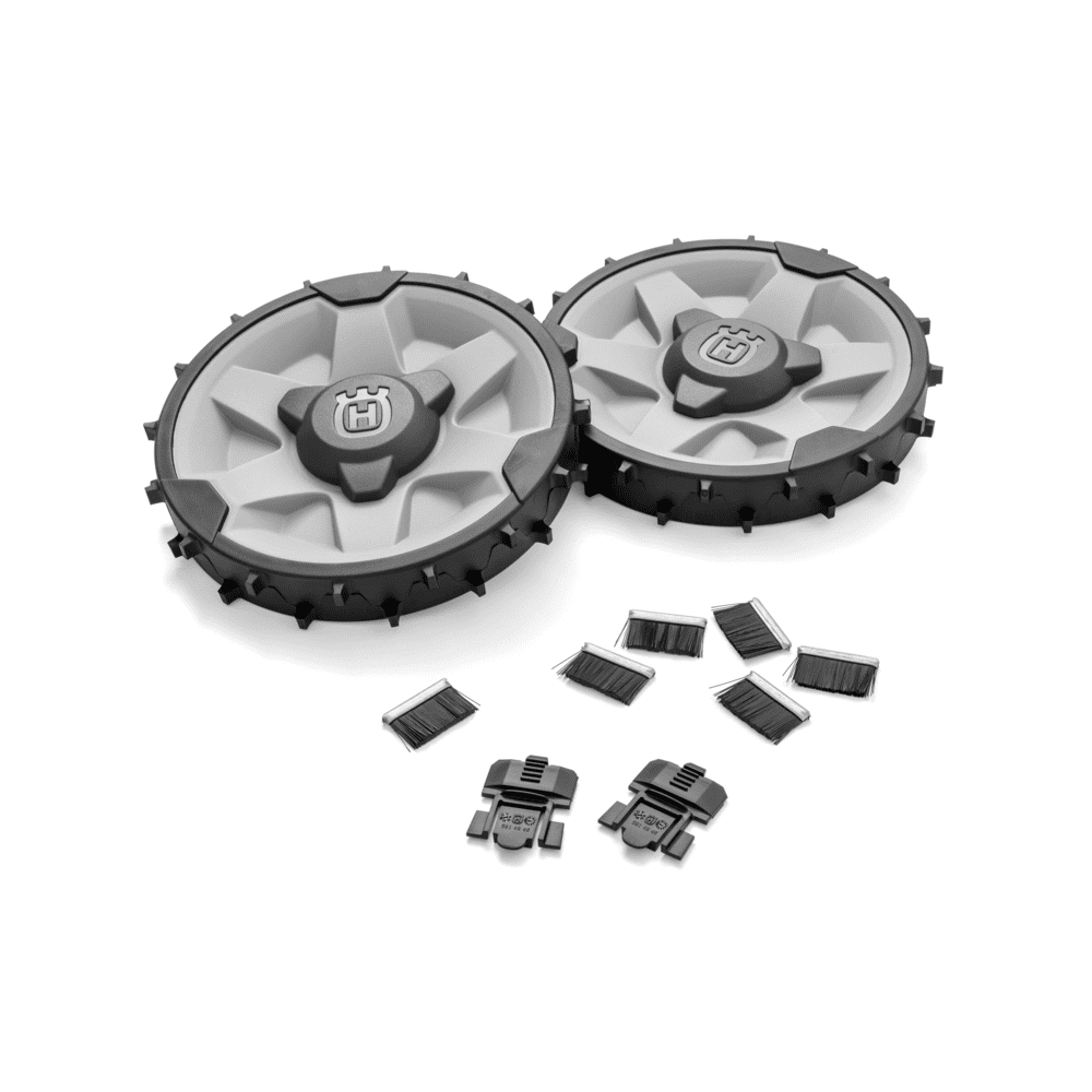 Pribor za zahteven teren je dodatna oprema za robotsko kosilnico Husqvarna Automower®. Pribor za zahteven teren zagotavlja odličen oprijem na grobih in neravnih travnatih površinah, zato bo vaša robotska kosilnica Husqvarna Automower® delovala v skladu z vašimi pričakovanji. Zmogljivost na strmini se poveča za kakšnih 5% na robu trate, odvisno od vremena in kakovosti trate.